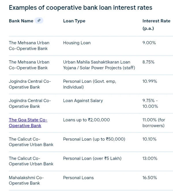 नीचे दी गई तालिका में प्रमुख सहकारी बैंकों की लिंक्स दी गई हैं, जहां आप दरें और आवेदन चेक कर सकते हैं: